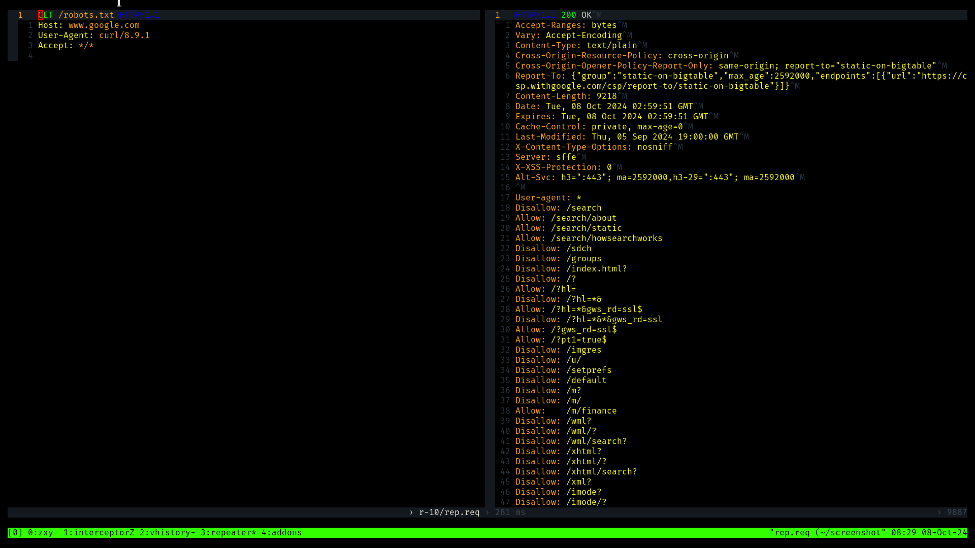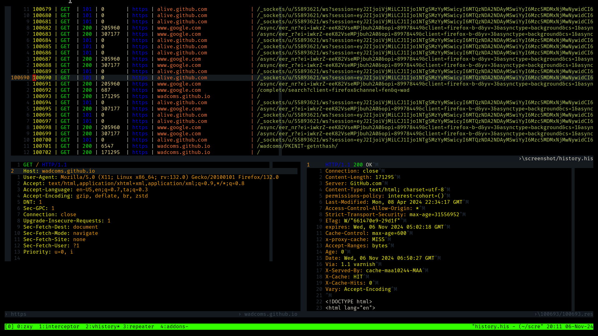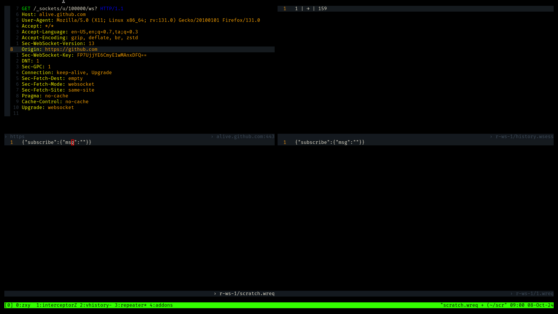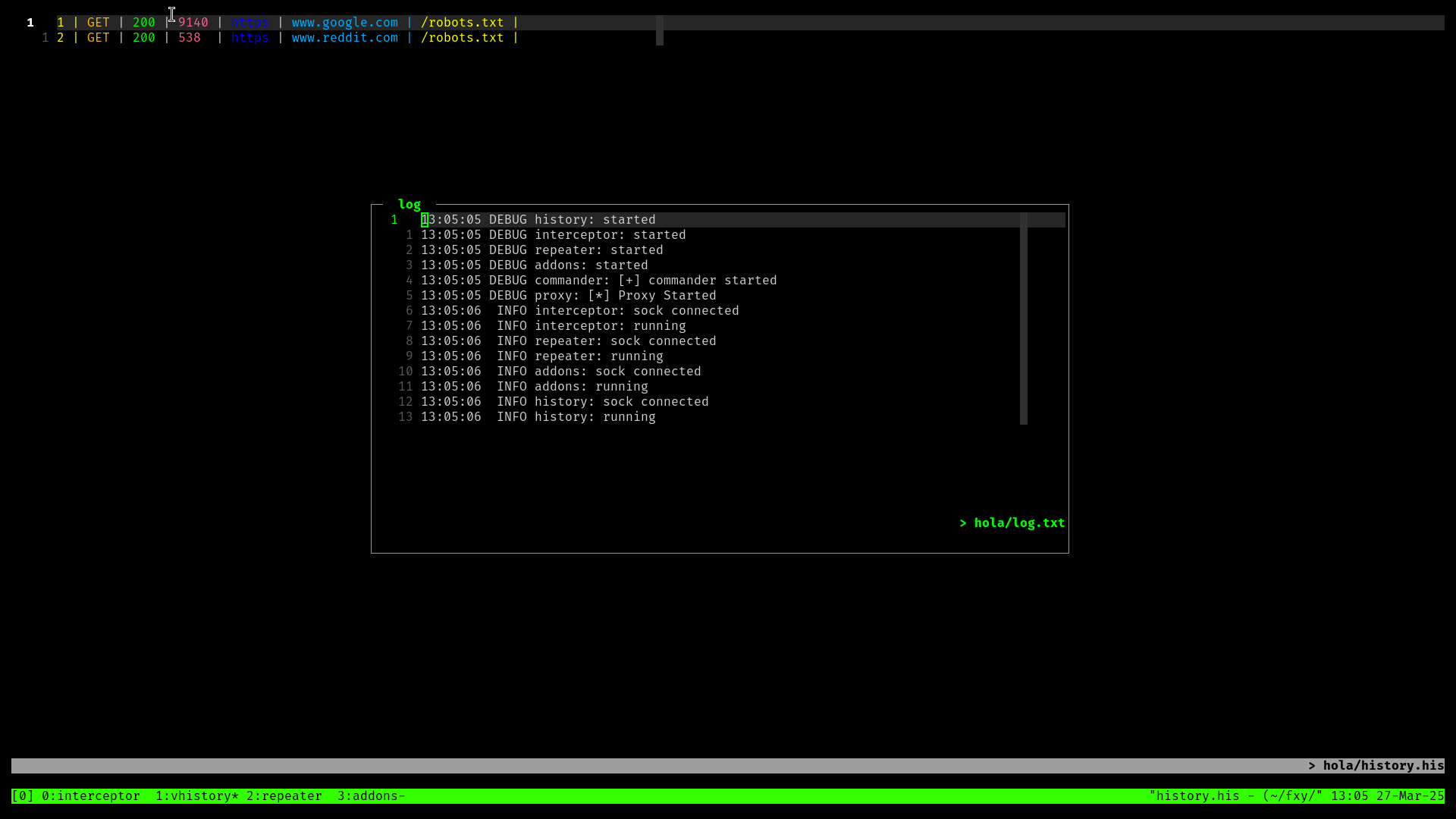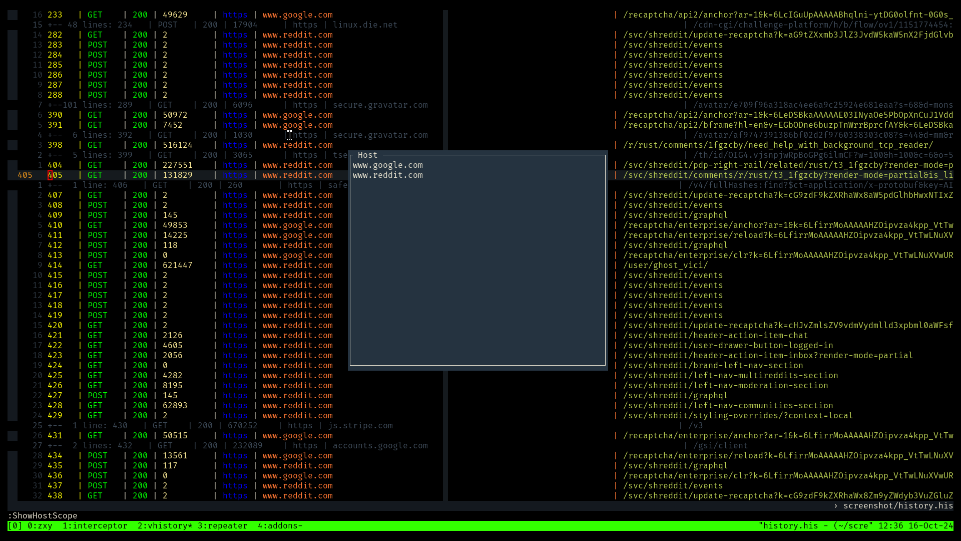 Terminal based intercepting proxy written in rust with tmux and vim as user interface.